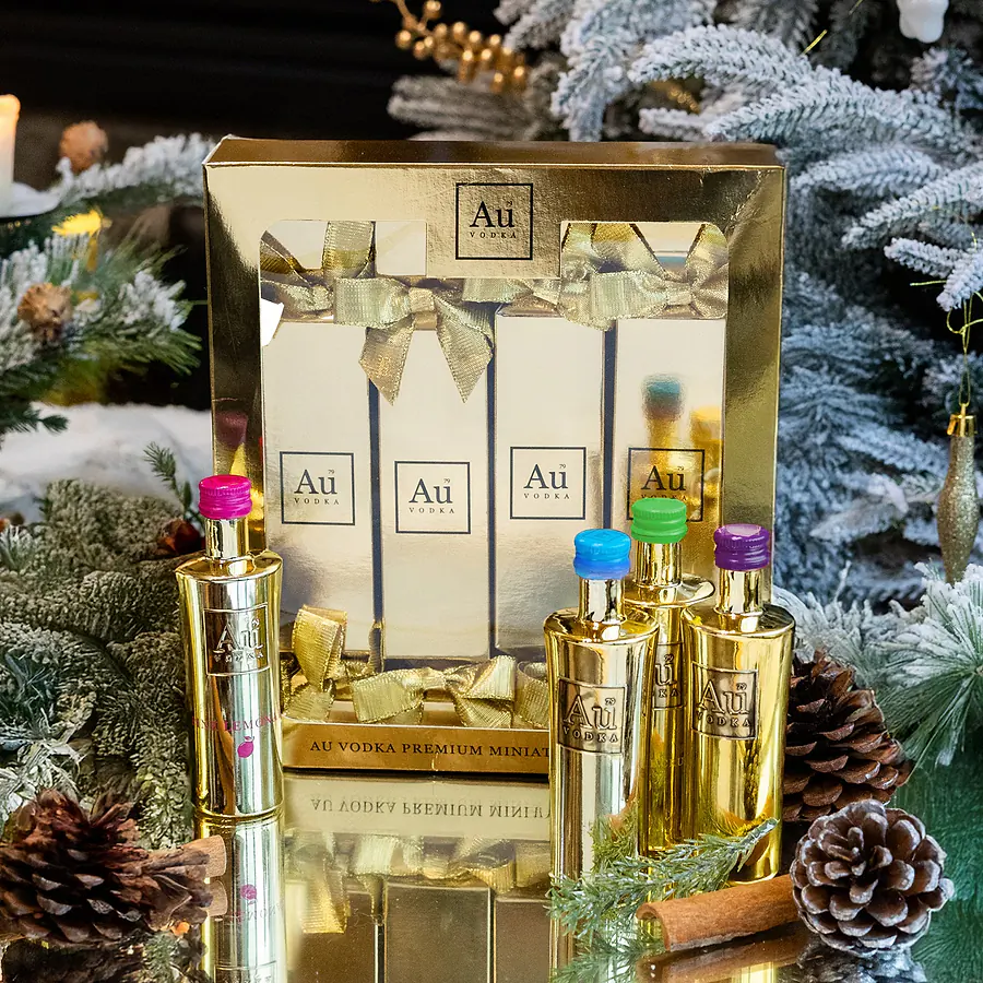 Get in the Christmas spirit with this premium Au Christmas Cracker Set. Featuring four luxury gold Au Christmas Crackers with six of our signature Au Vodka Miniature 5cl bottles packed inside.